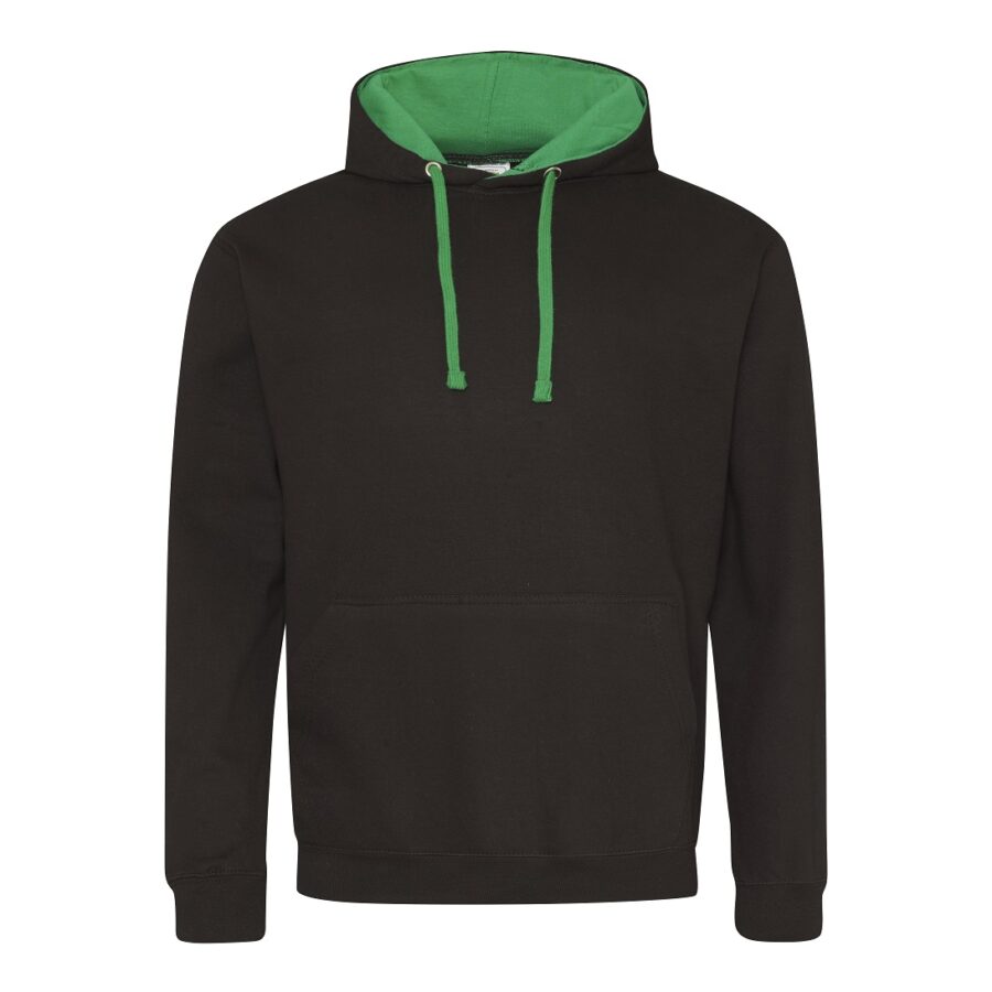 - Double fabric hood, with contrast inner and matching flat lace draw-cords.